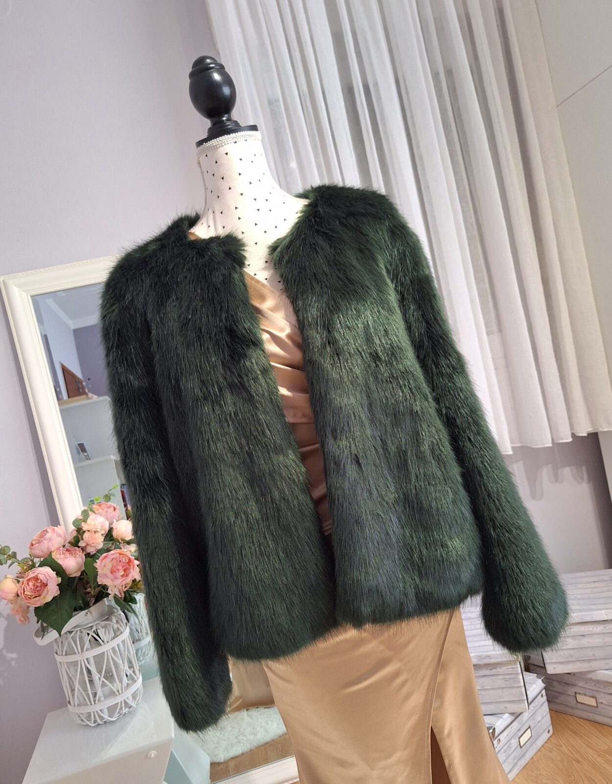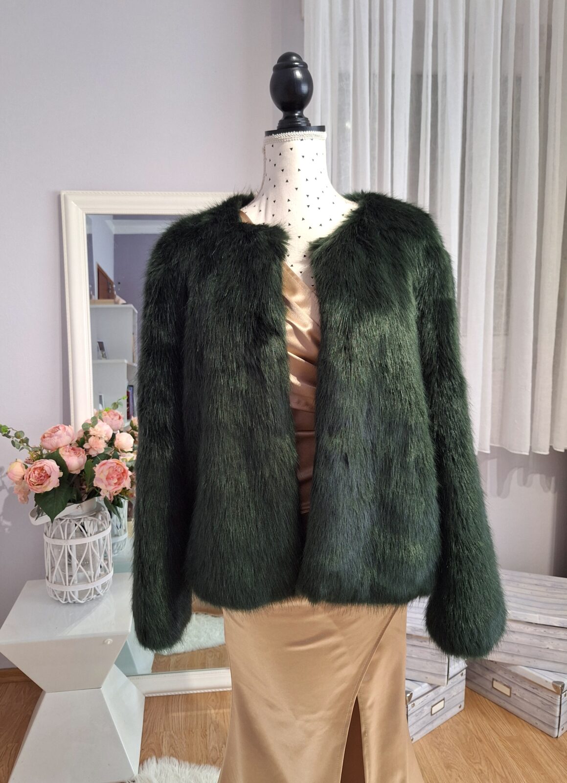Bundica tamno zelene boje dugih rukava, može se zakopčati sa jednom kopčom,