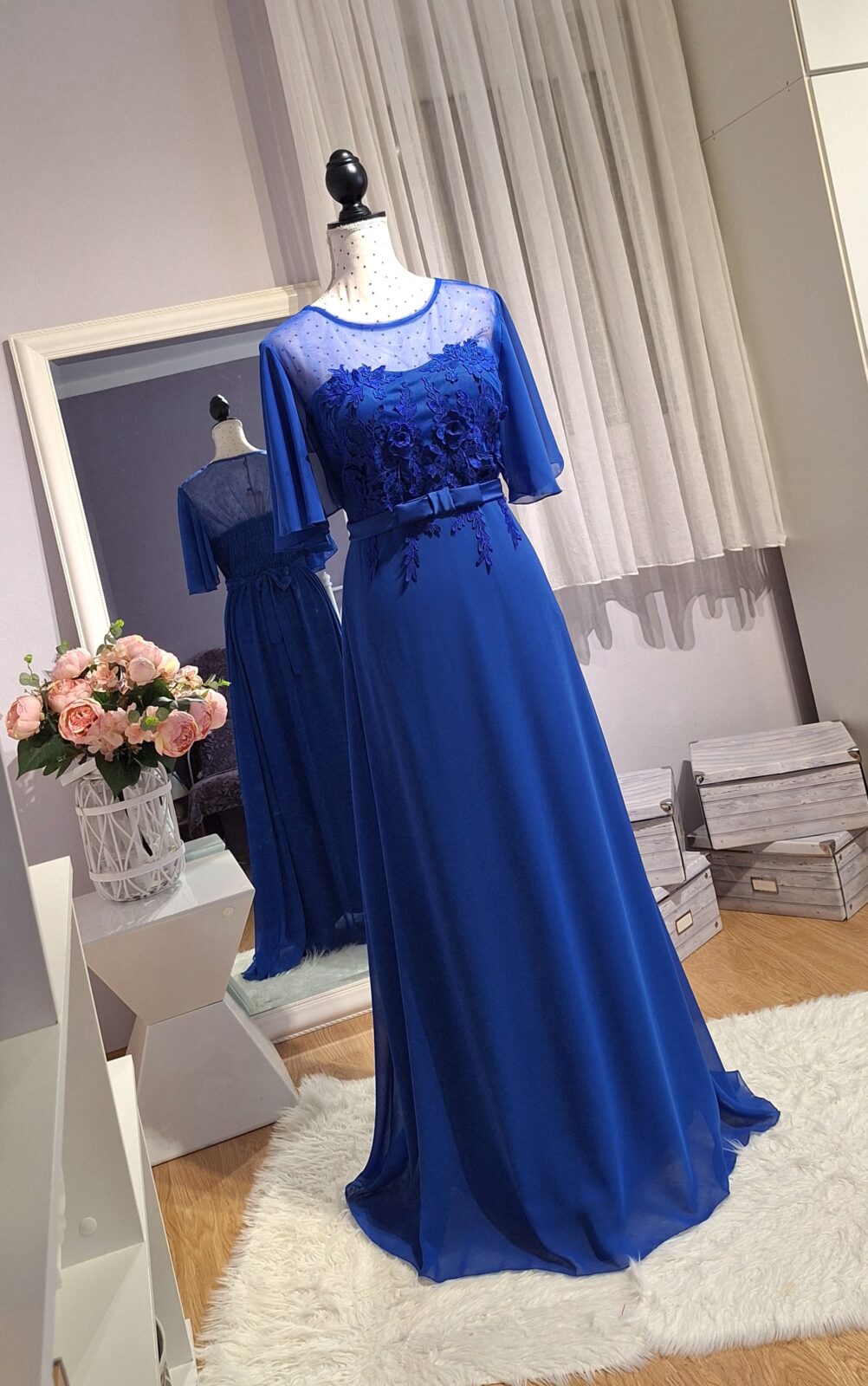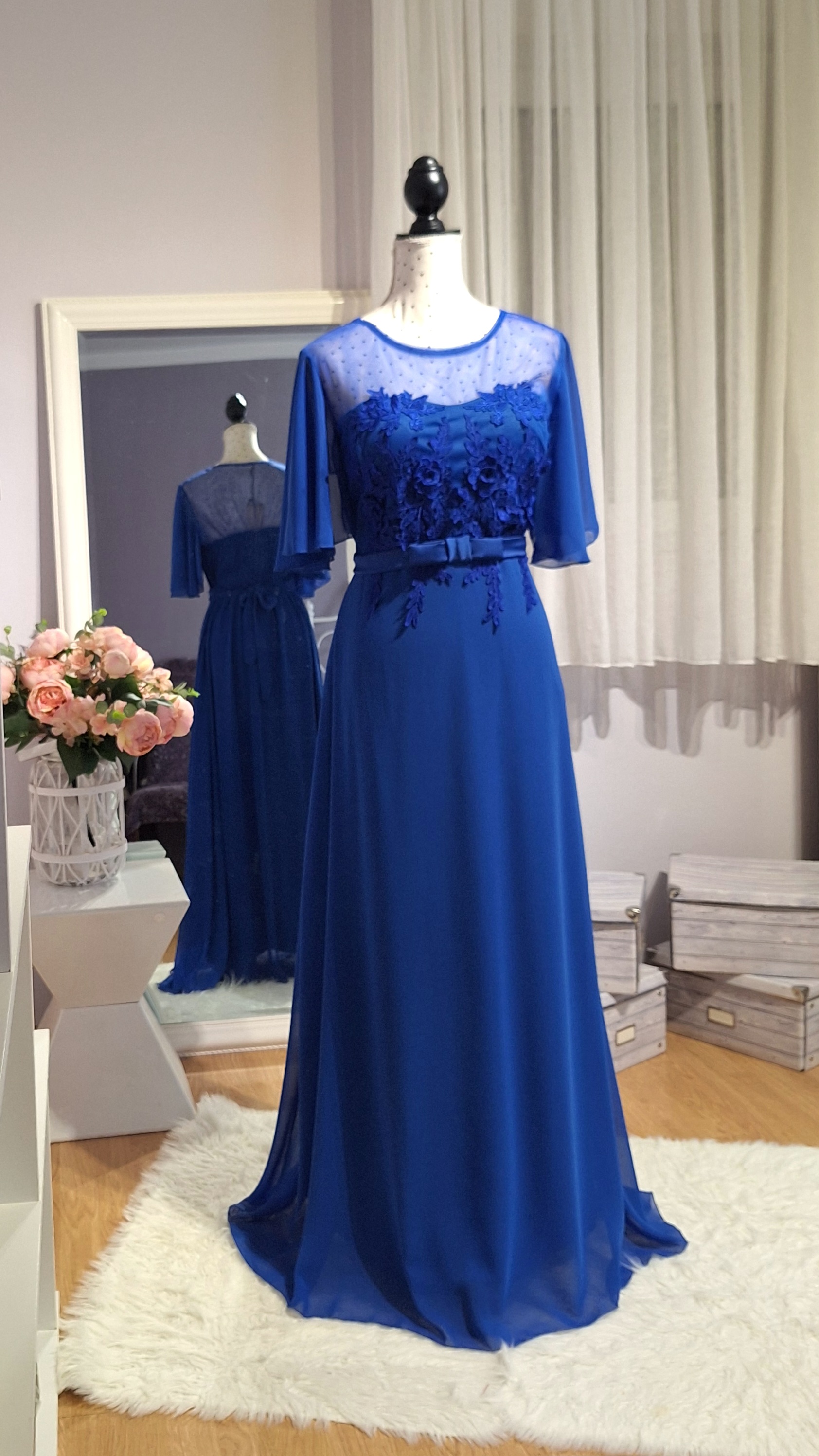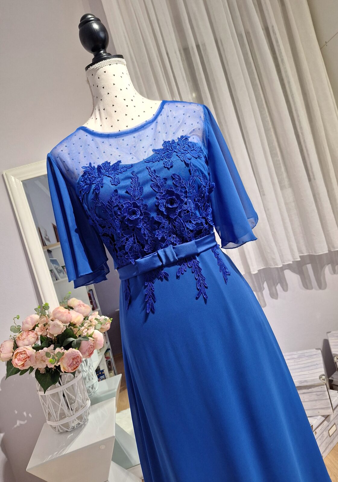 Haljina duga kraljevsko plava sa čipkom, gumica na leđima,
