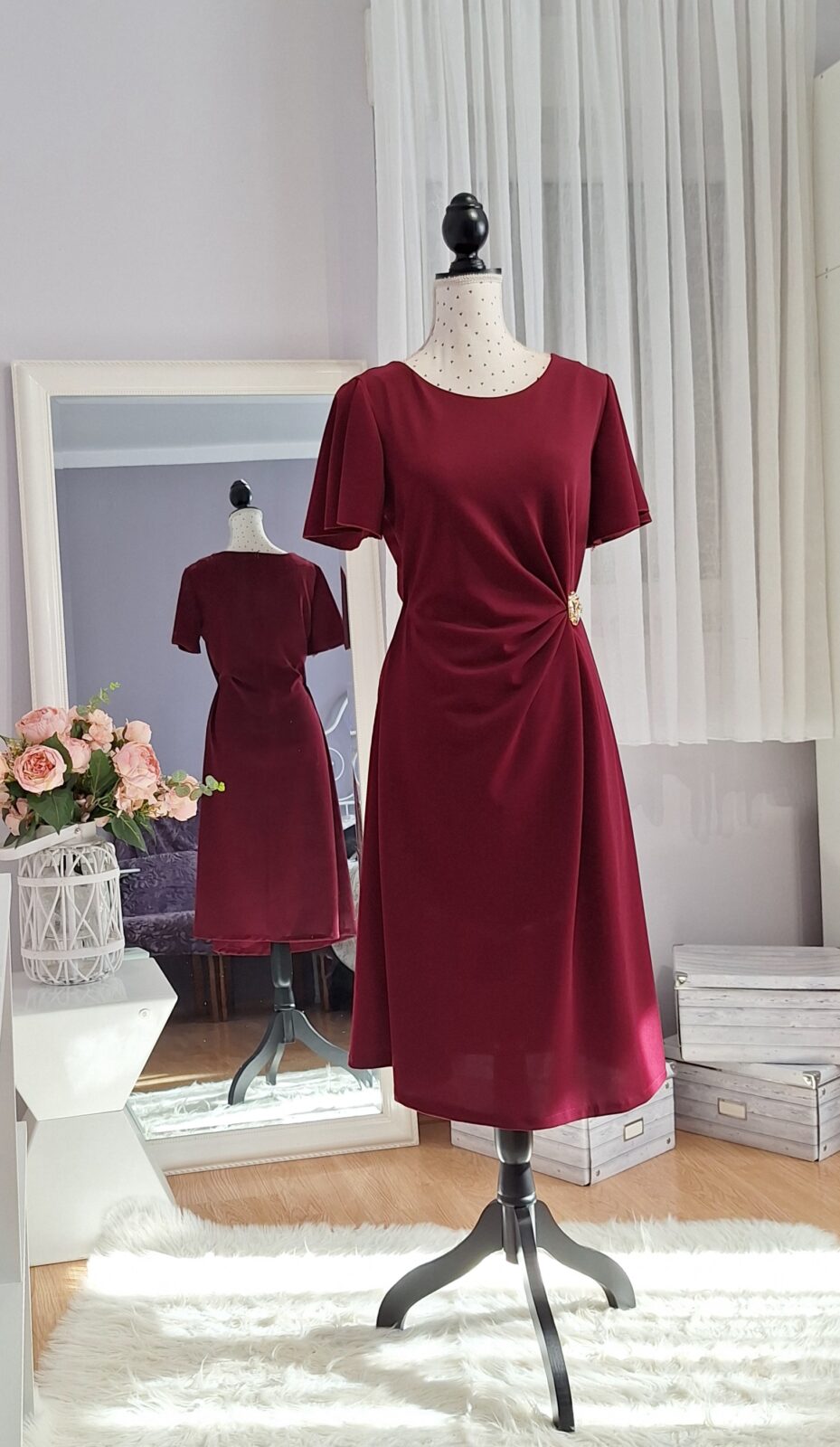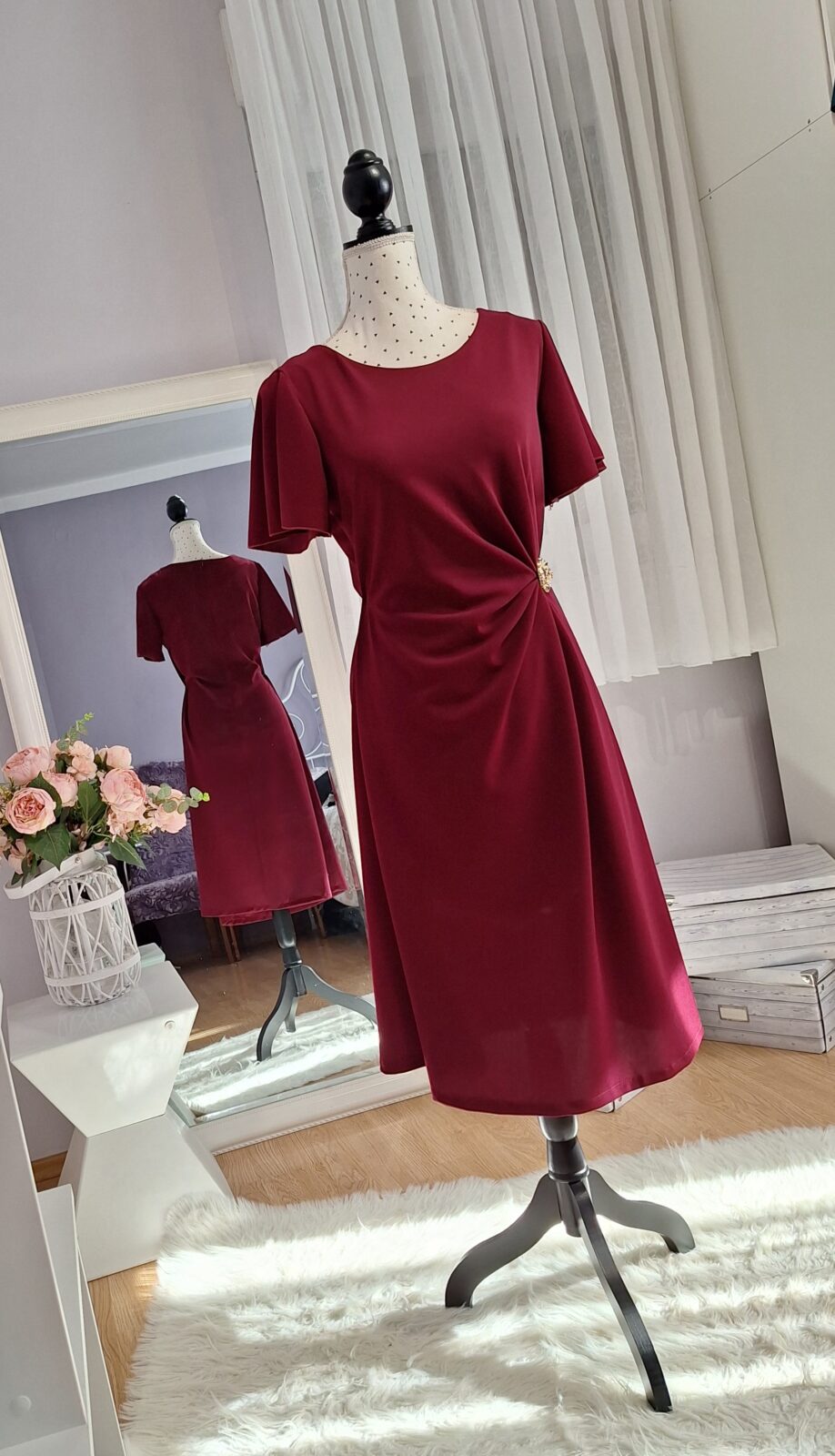 Haljina kratka bordo boje, kratki rukavi, zatvarač na leđima,