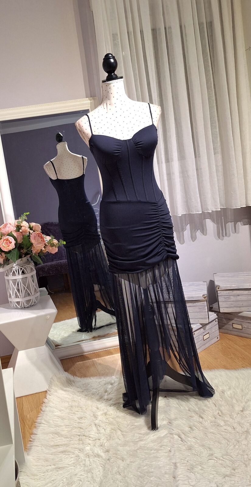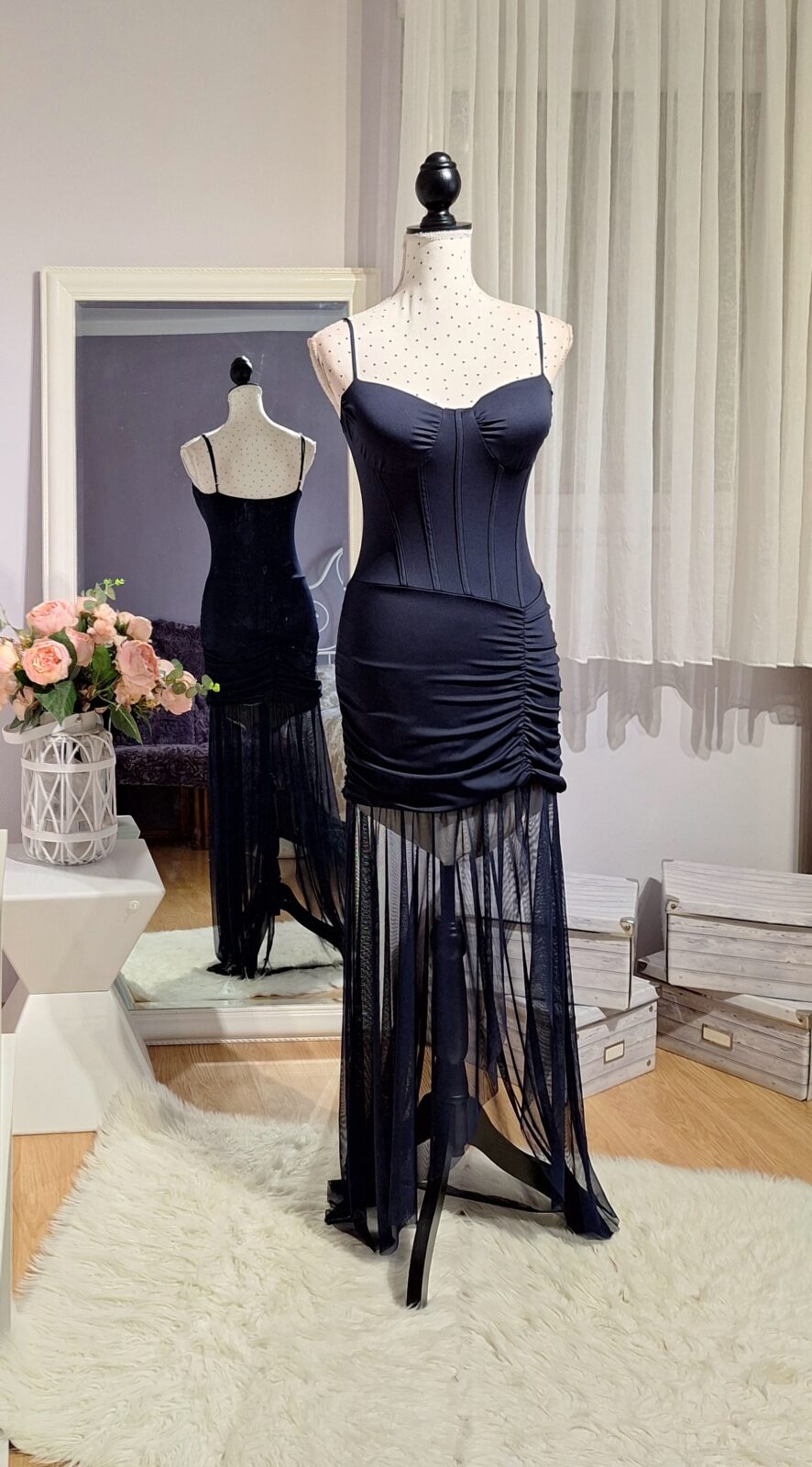 Haljina kratka tamno plava s tilom, podesive naramenice,