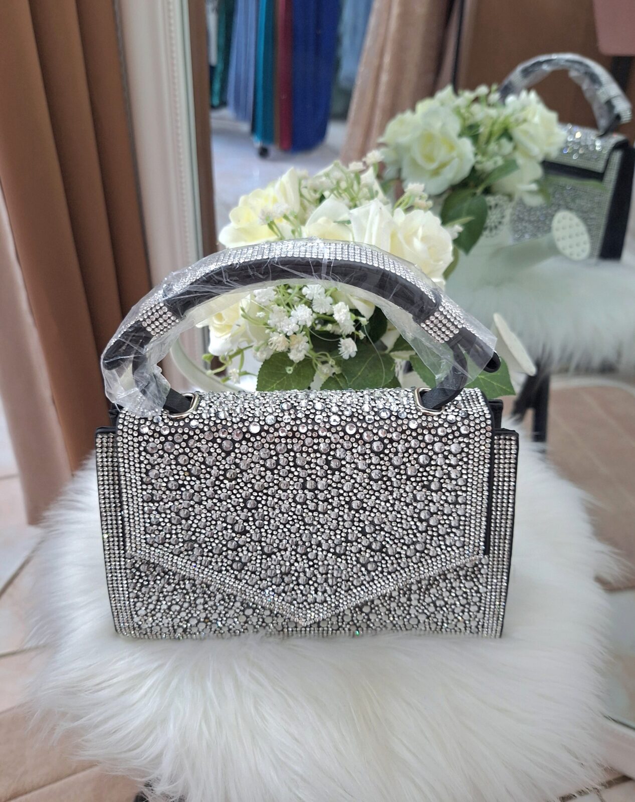 Torbica crno-srebrna sa cirkonima