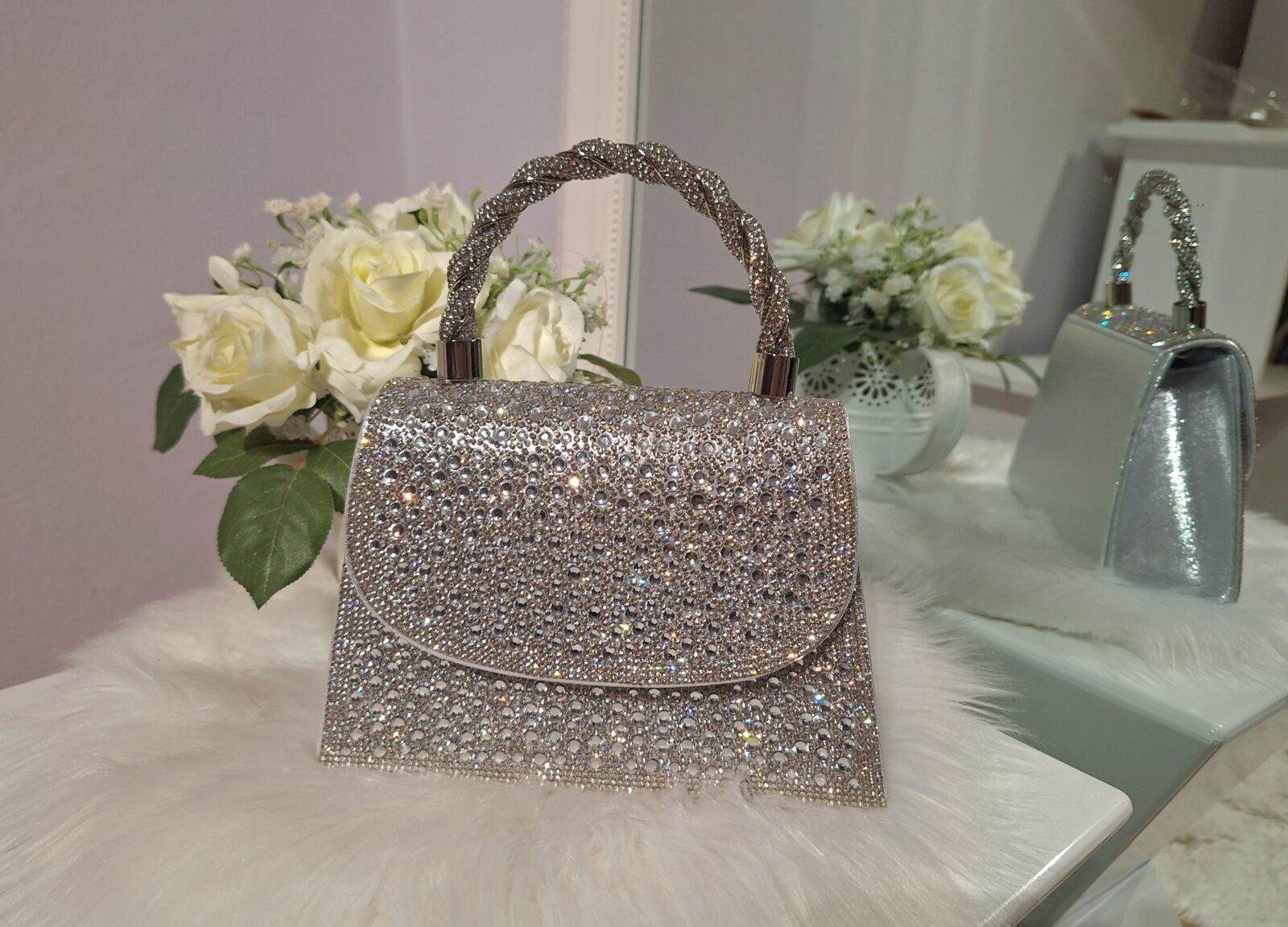 Torbica srebrne boje sa šljokicama