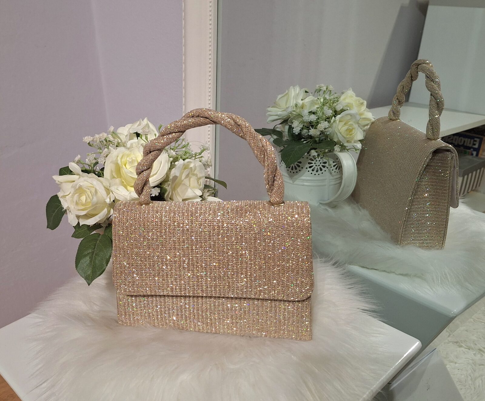 Torbica zlatne boje sa šljokicama