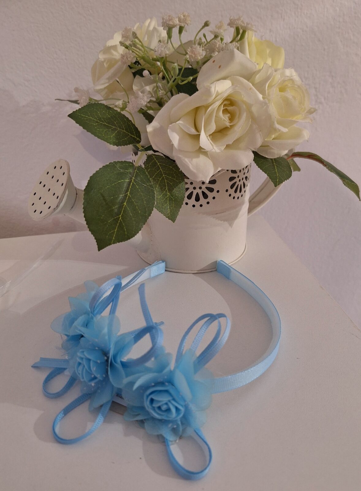 Traka za kosu svijetlo plava sa cvjetićima